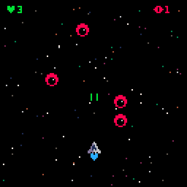 This is my attempt at fitting a simple shmup into <=500 characters for Tweet Tweet Jam 10. Shoutout to Krystman, whose Youtube shmup tutorials were a big inspiration.